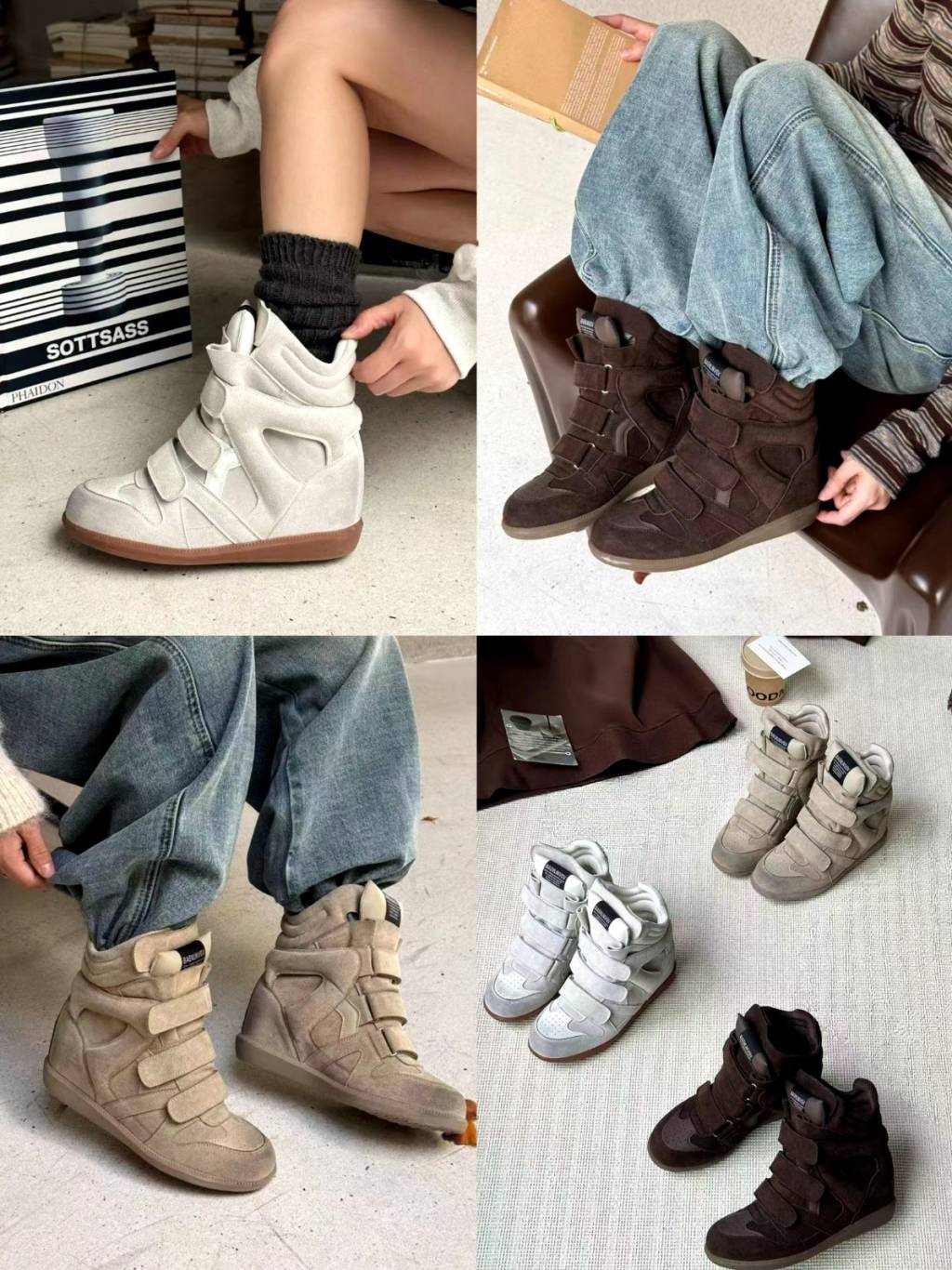 DAM02 高筒牛皮魔術貼波鞋 [隱形增高5cm] (225-250) $520