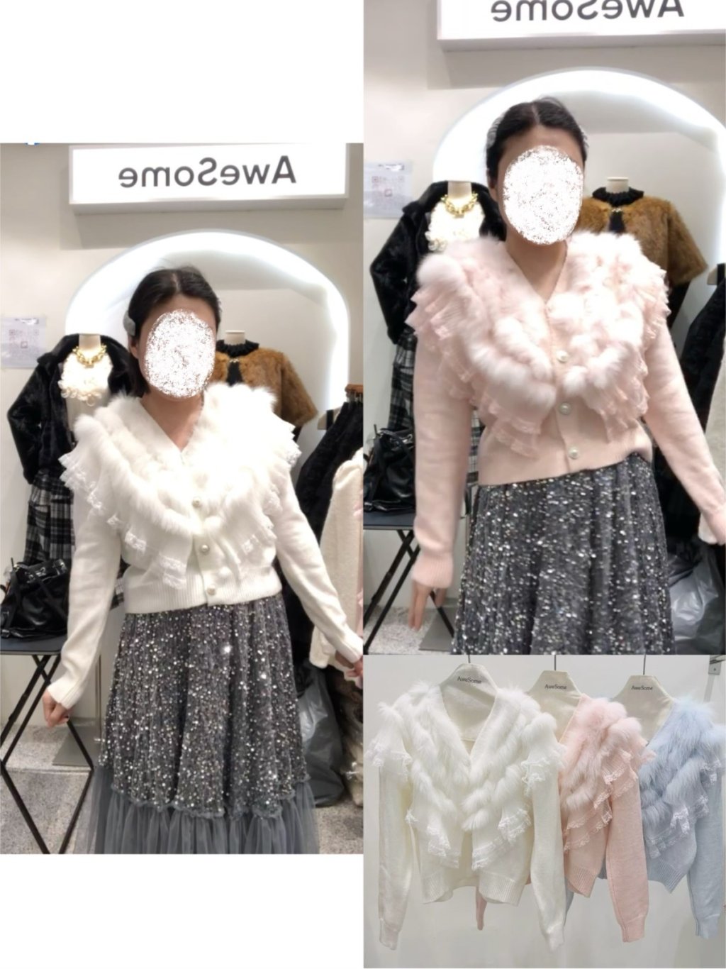 AW198 (狐狸毛)毛毛拼通花邊邊針織JK 50/20 ❌原價$548 ✅Everwell限時下單價$498