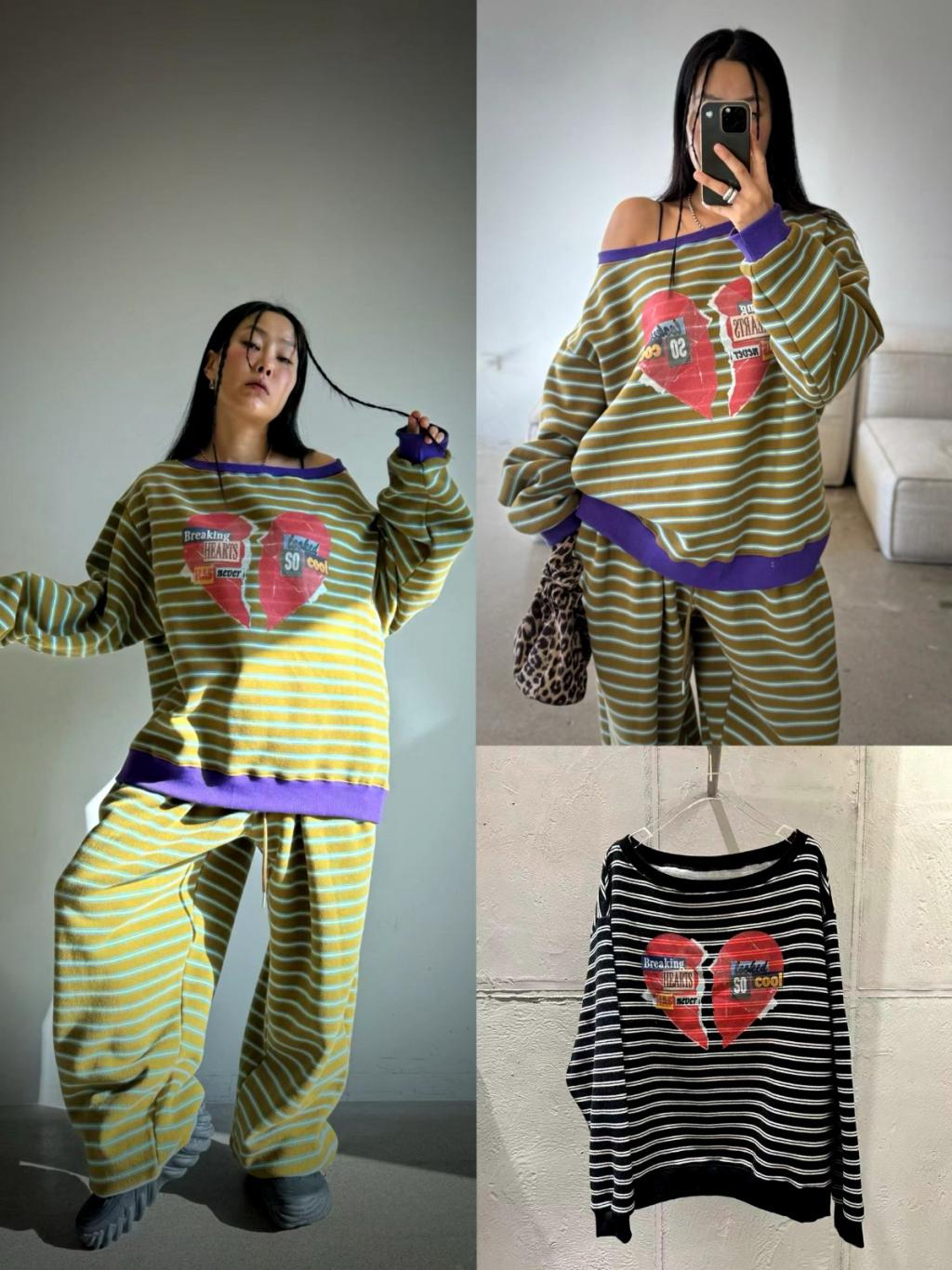 UN164 加絨心碎圖案間條露肩TOP 56/26 $390