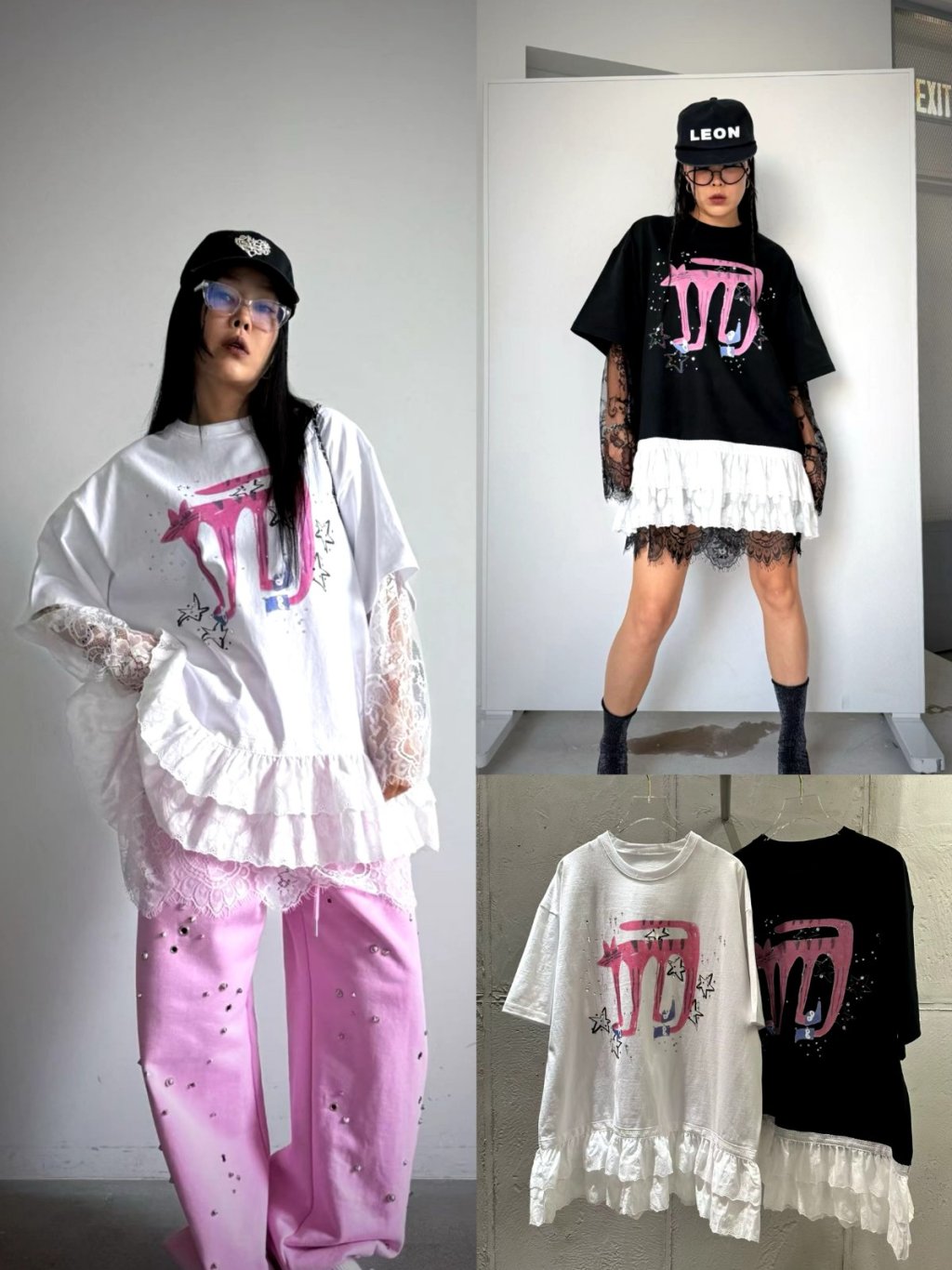 UN169 粉貓貓窩釘飛邊TOP