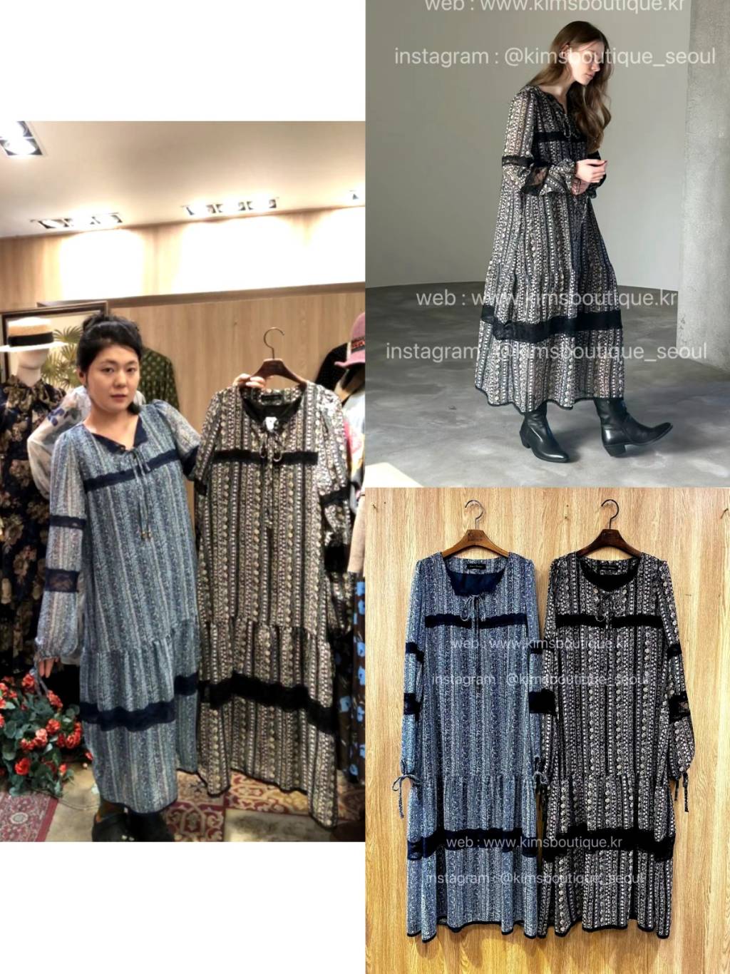KB533 雪紡民族感圖案拼蕾絲OP 42/44/46/48 $630