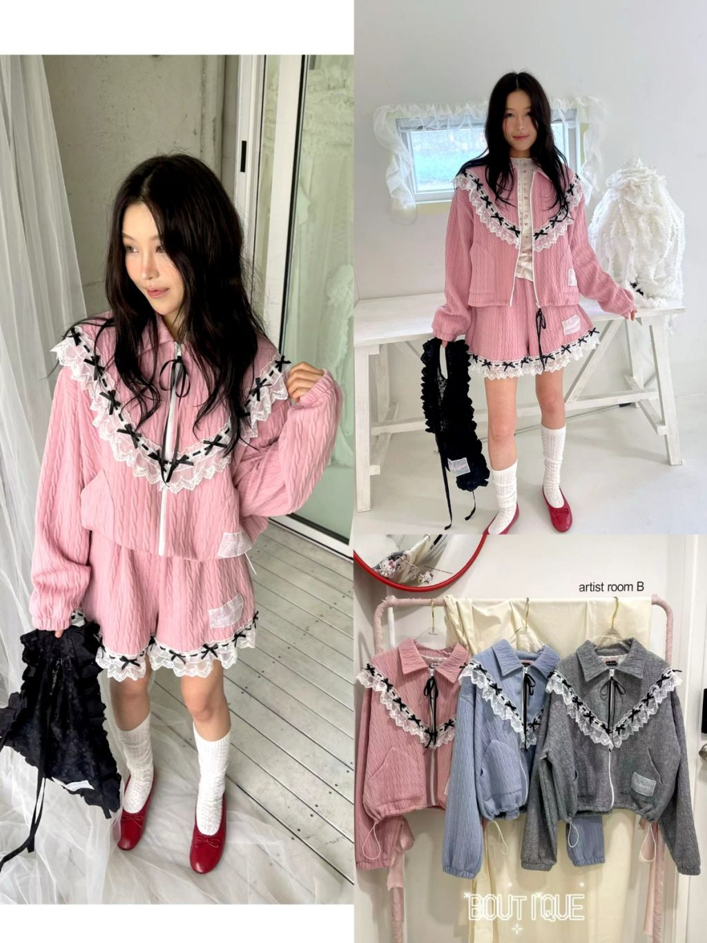 Home B816 蕾絲拼接蝴蝶結邊JK