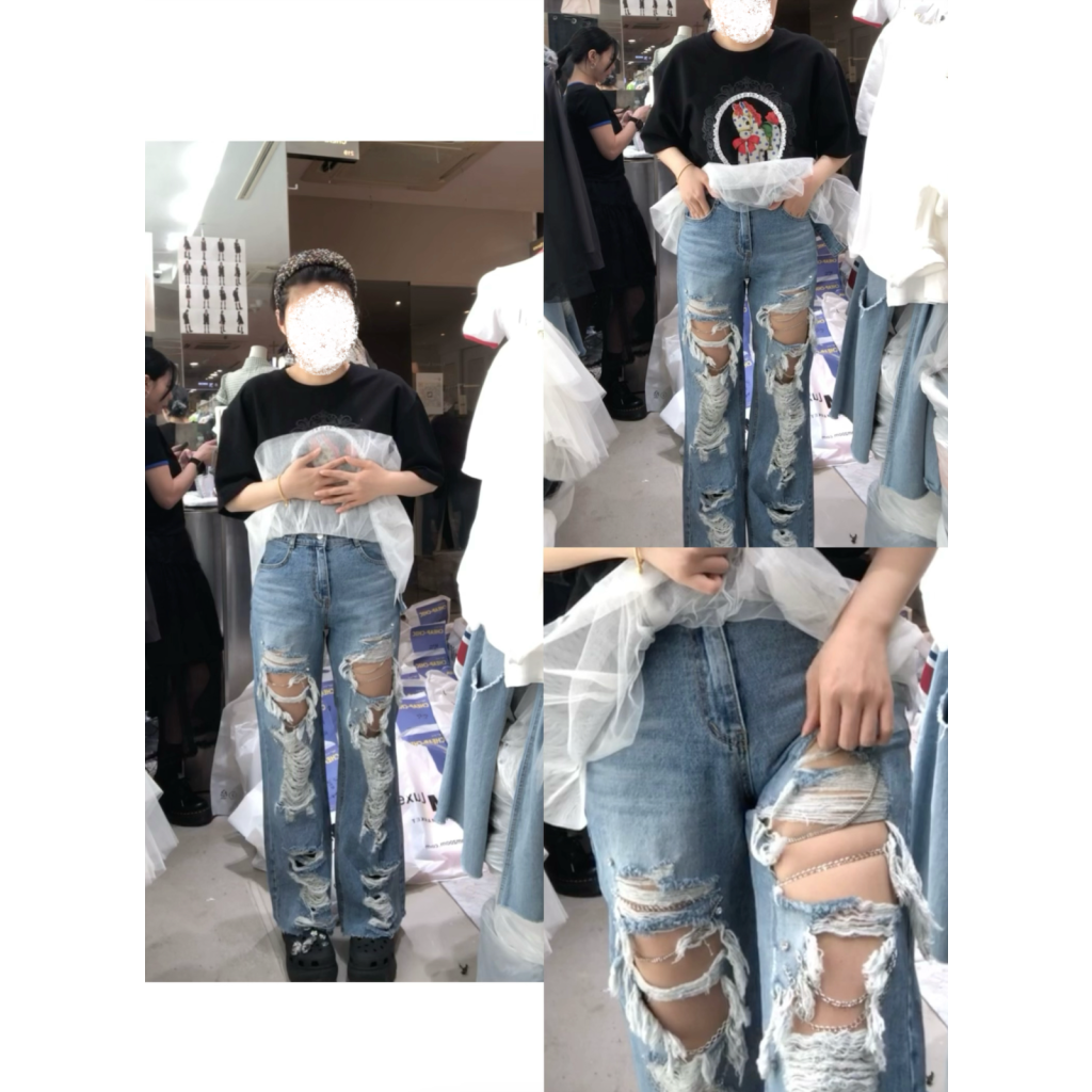 CT261 窩釘閃鑽破爛感牛仔PT S28/41/40 M30/42/40 L32/43/40.5 $610 (尺寸因人手量度,可能有1-3cm偏差,輕微的誤差屬正常範圍)
