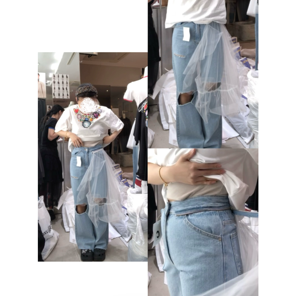 CT264 可拆紗紗外搭破洞牛仔PT S28/42/41.5 M30/43/41.5 L32/44/42 $610 (尺寸因人手量度,可能有1-3cm偏差,輕微的誤差屬正常範圍)