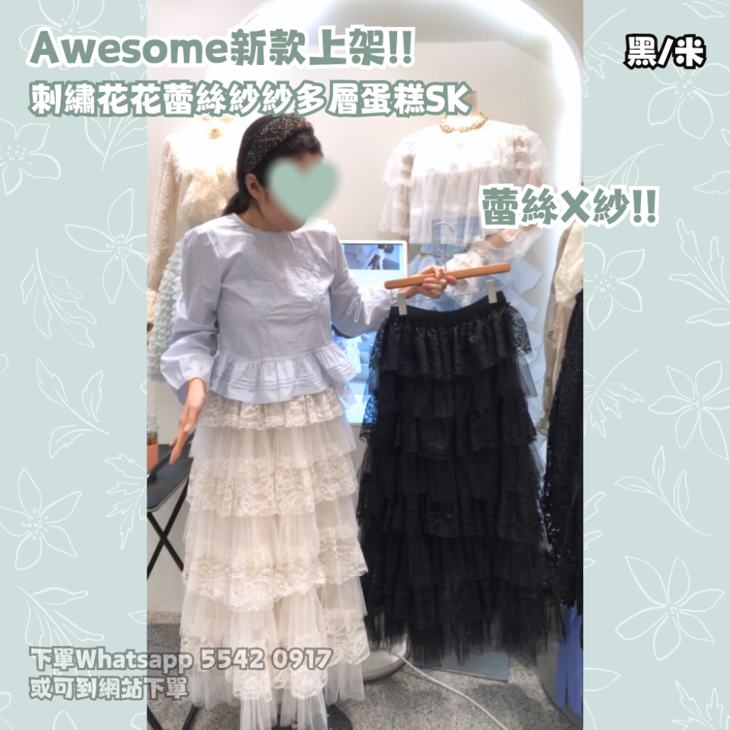 AW241 刺繡花花蕾絲紗紗多層蛋糕SK 28-50/55/38 $398