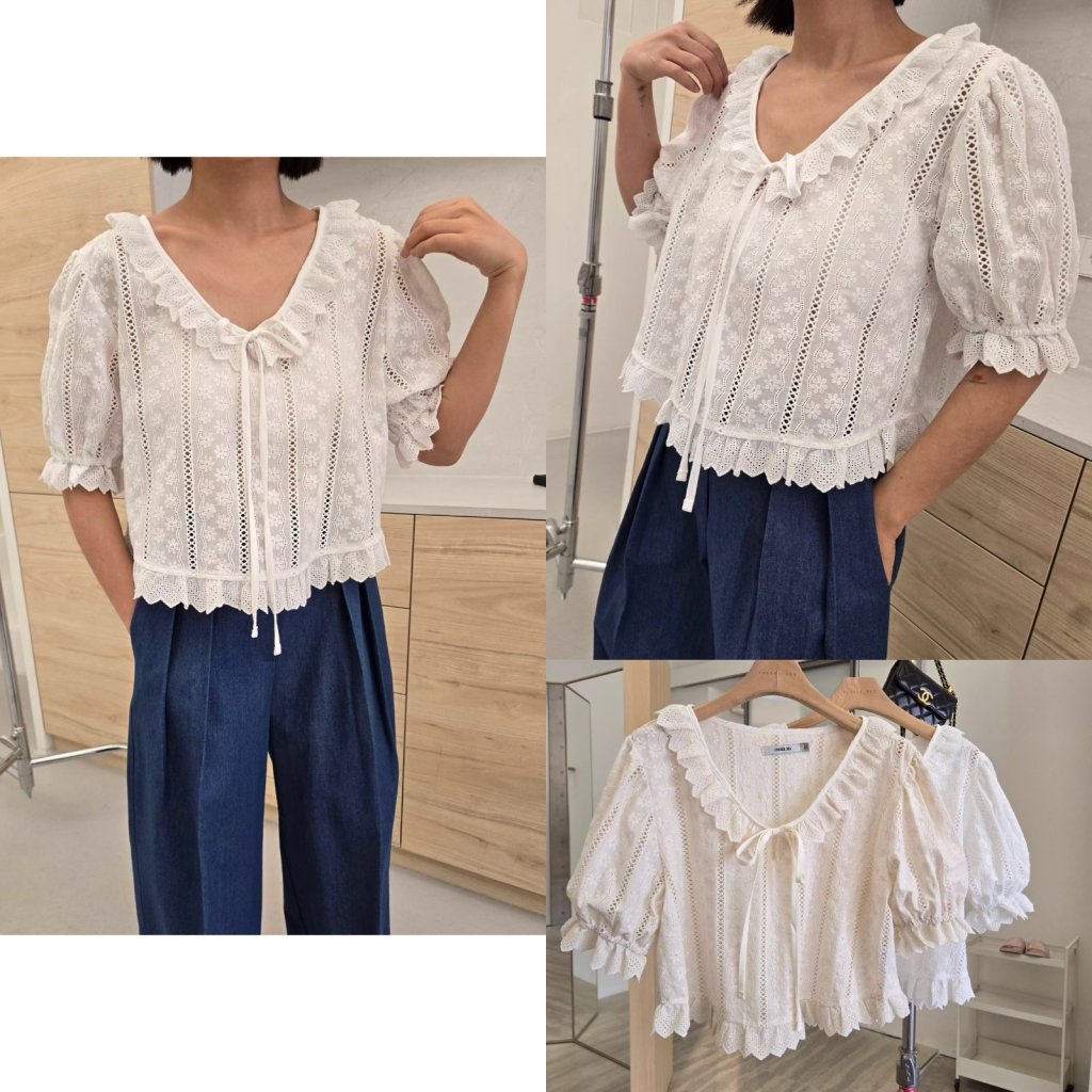 CN43 荷葉綁帶通花上衣 43/17 $398