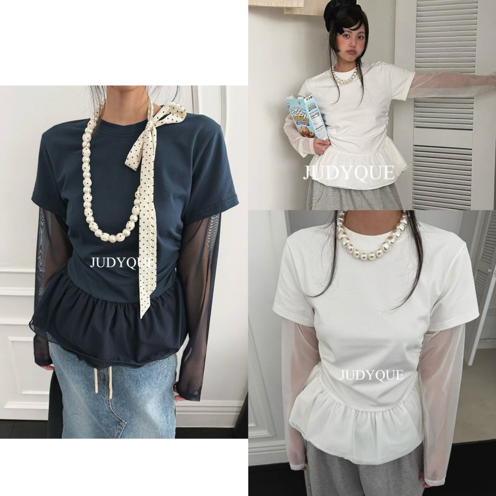JD377 芭蕾感紗紗袖假兩件TOP