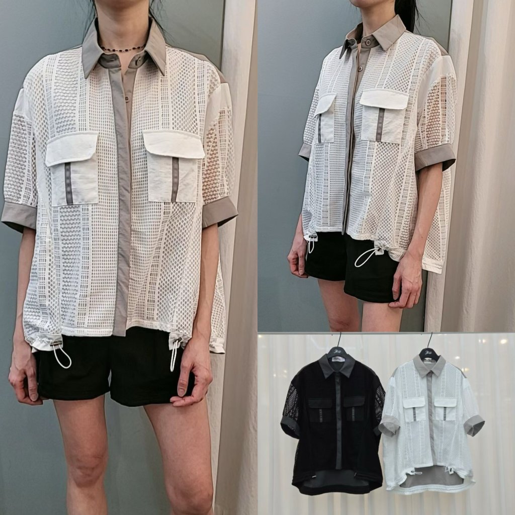 BK121 鏤空拼接感口袋抽繩TOP 52/27 $320