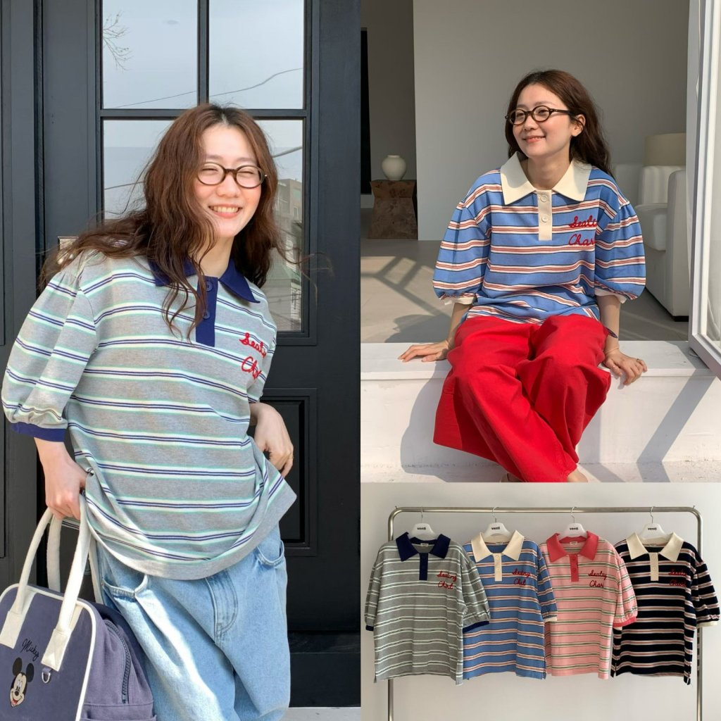 VT544 拼色polo領間條TOP
