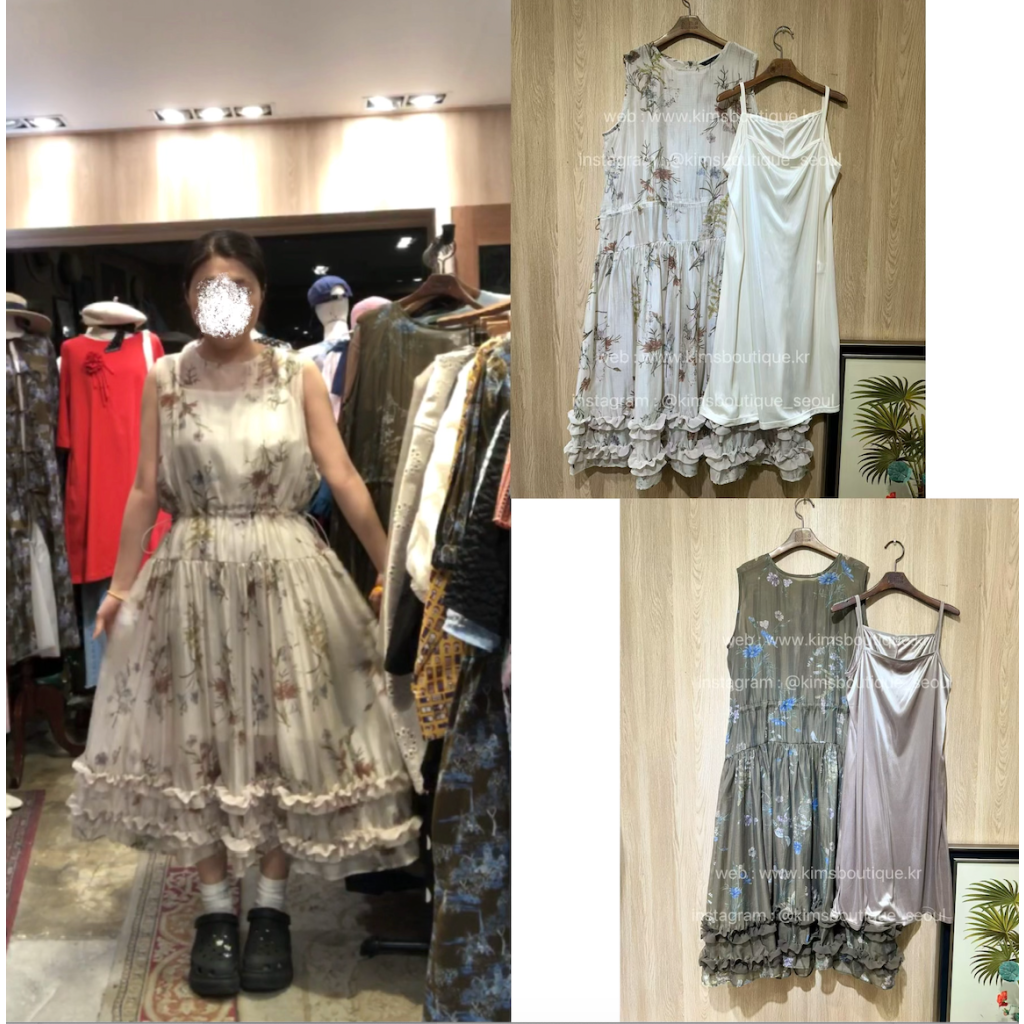 KB594 Ruffle裙腳復古水彩花OP(送吊帶外搭) 外44/46/54/48 內40/44/50/37 $698