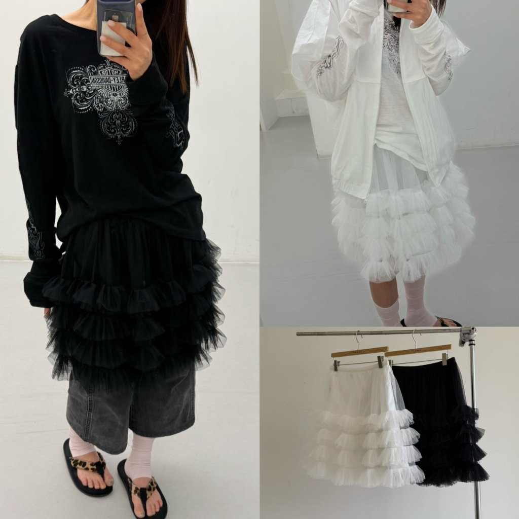 F143 多層紗紗中長SK