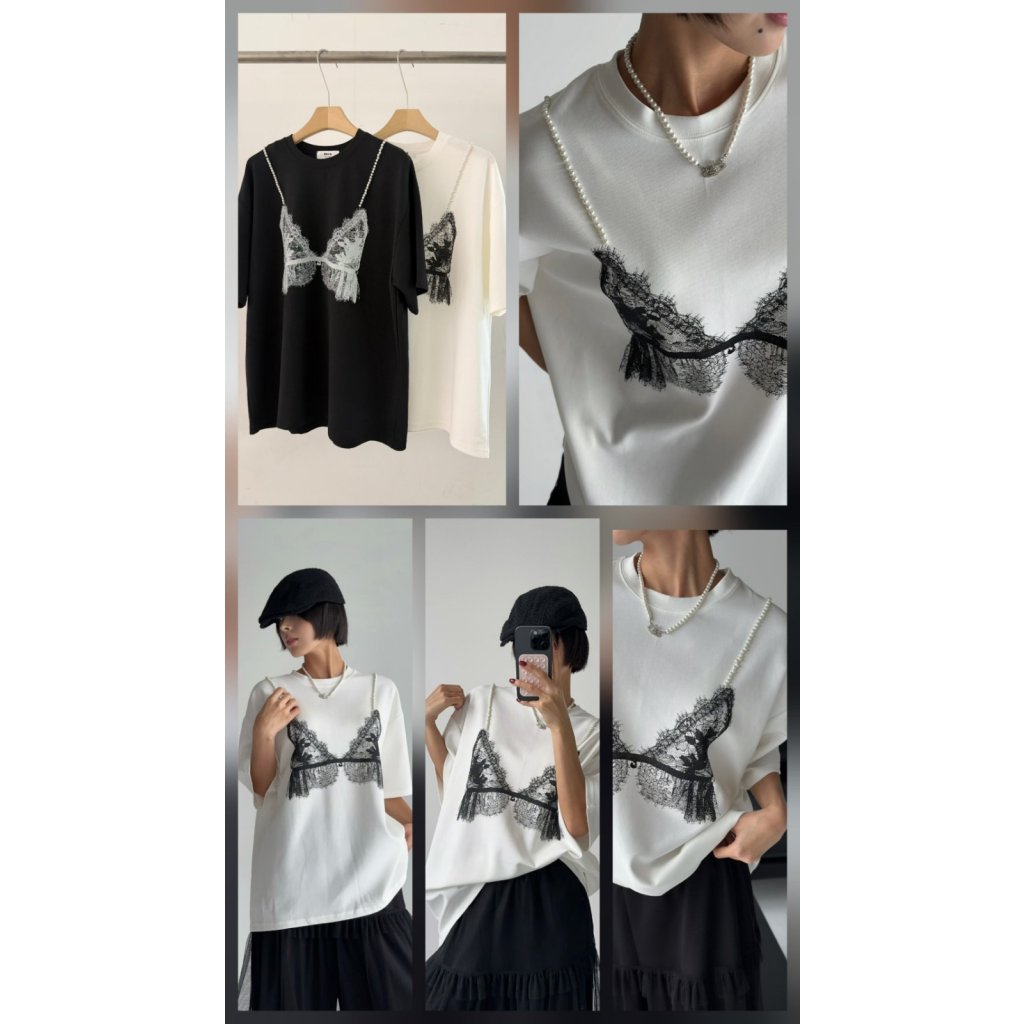 Home AK66 刺繡蕾絲BRA TOP假兩件TOP