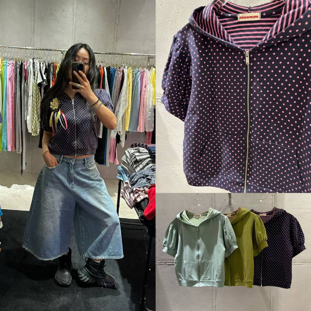 UN192 拼色波點撞色連帽TOP 42/19 $350