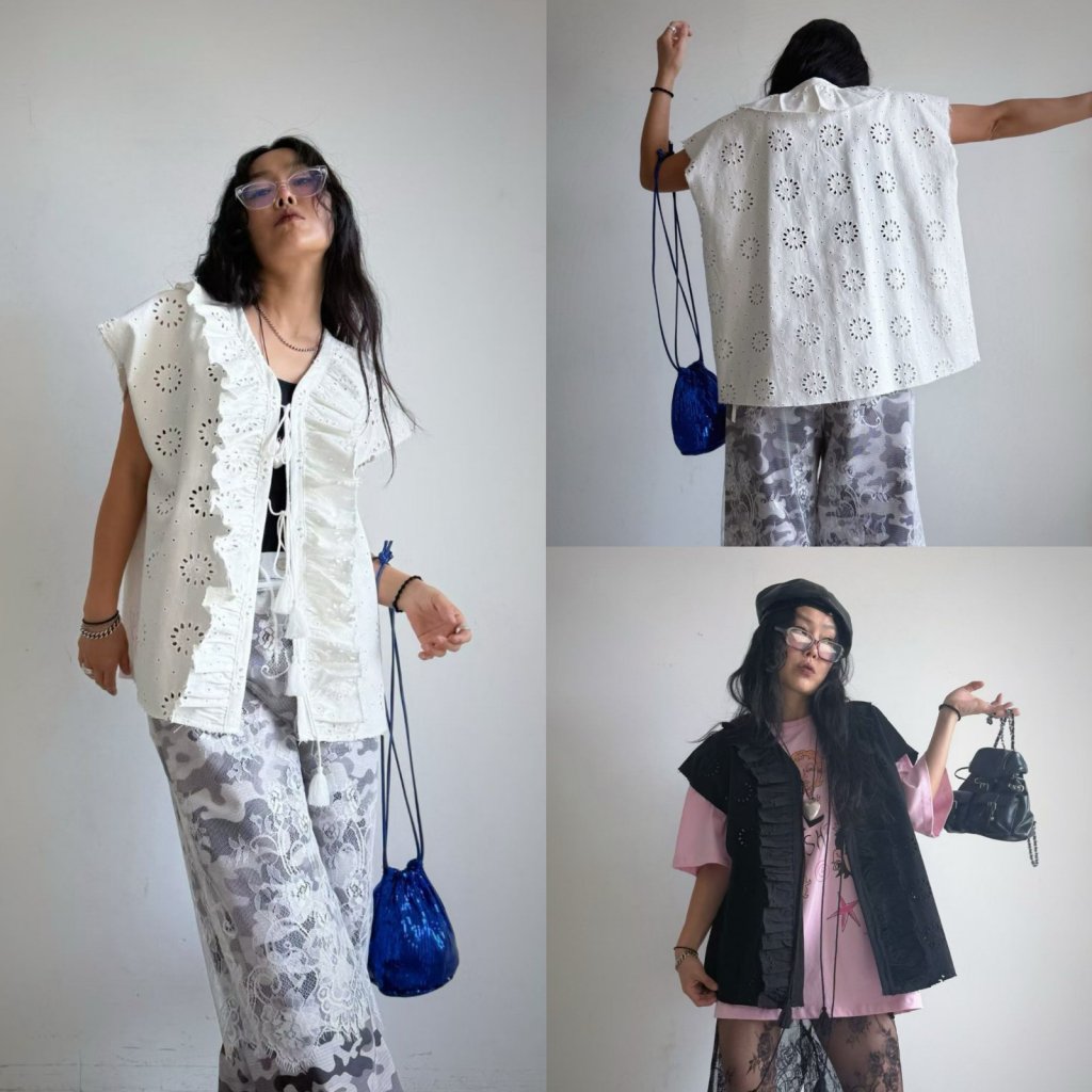 UN206 ruffle邊邊通花綁帶外搭 54/26 $528