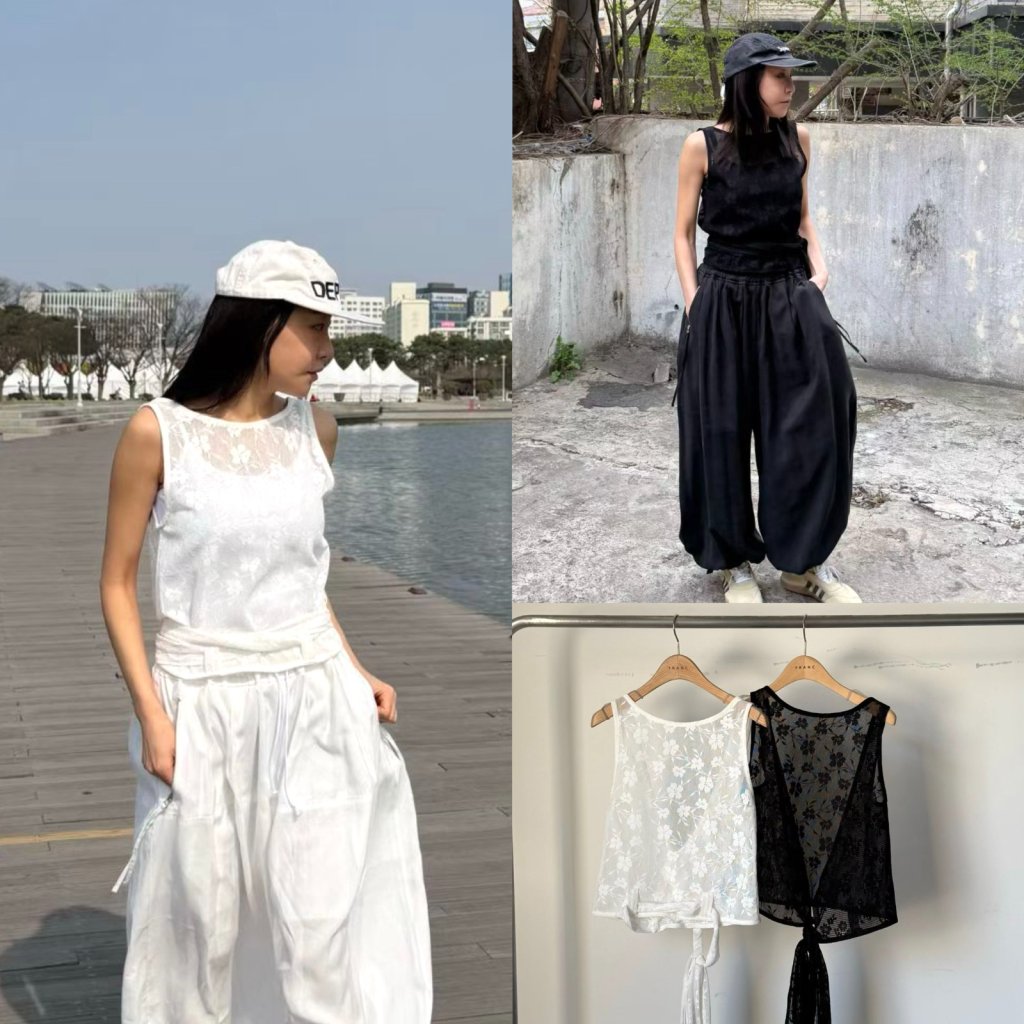 F153 前後2穿花花蕾絲綁帶背心 34/19/手臂16 $320