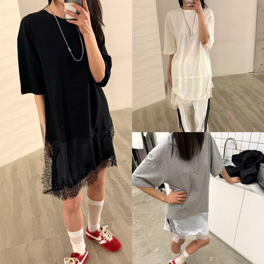 F158 斜Cut蕾絲邊T恤 48/38 $350