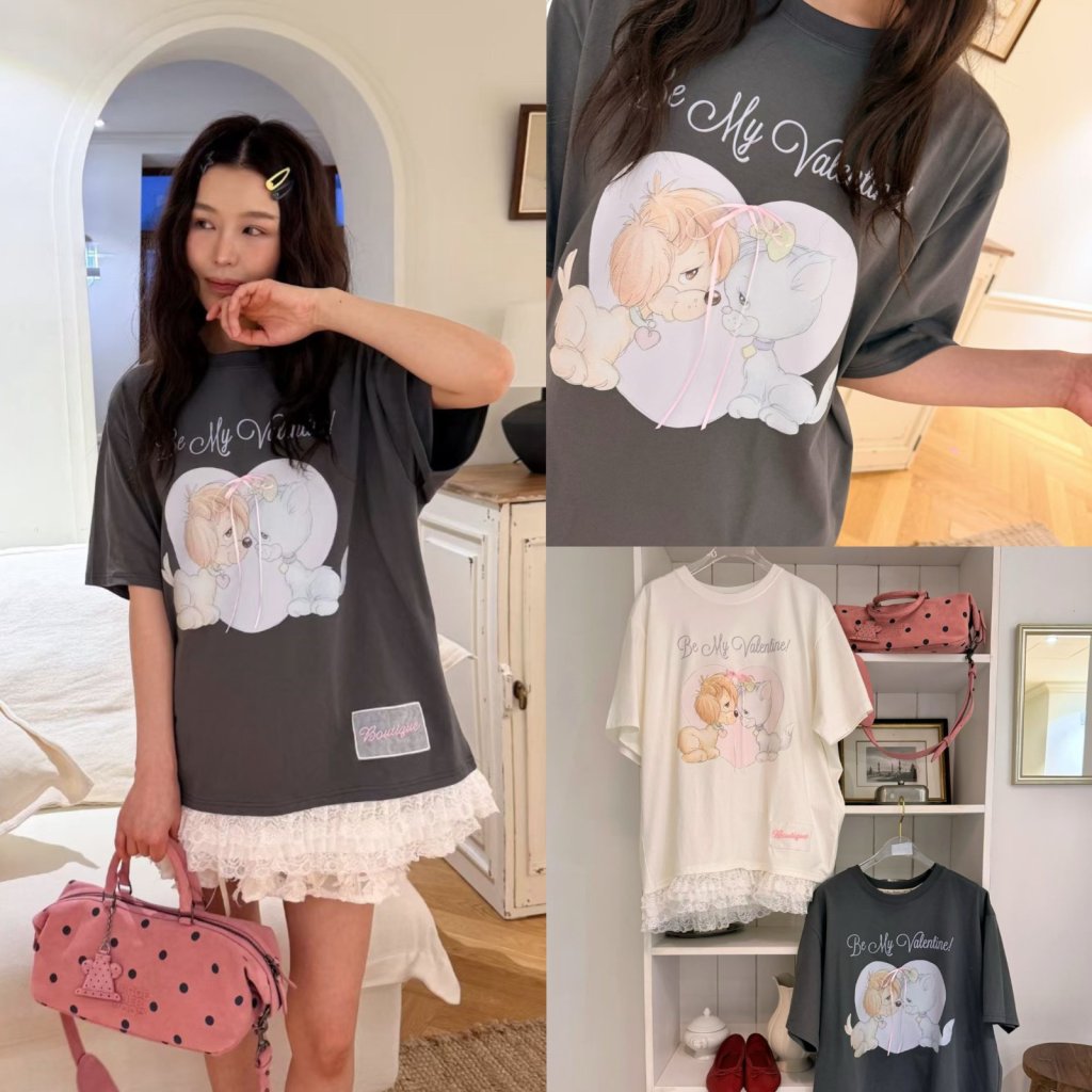 Home B867 情人小狗小貓蕾絲邊T恤