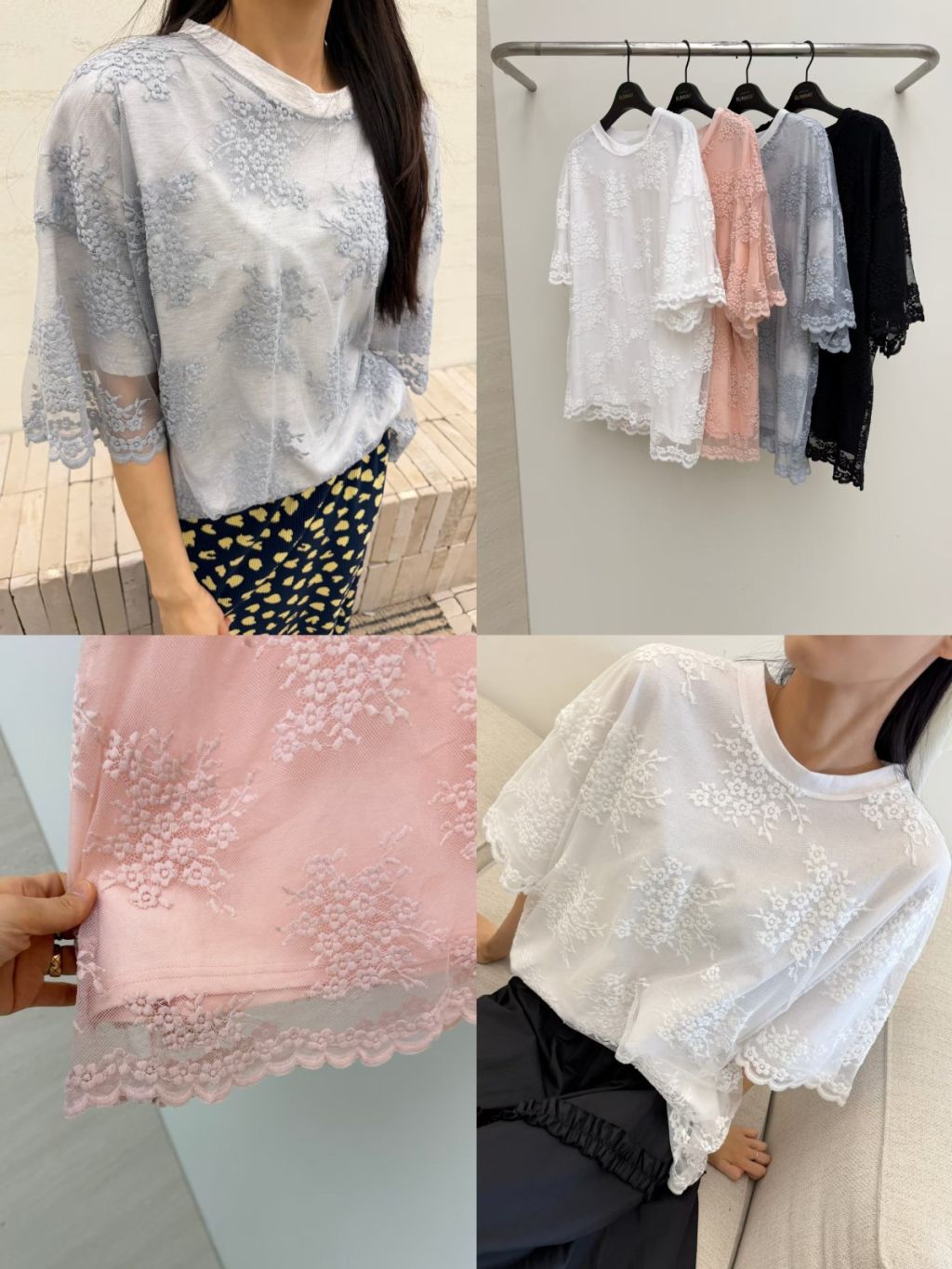 RW493 刺繡小花花雙層TOP 52/28 $380