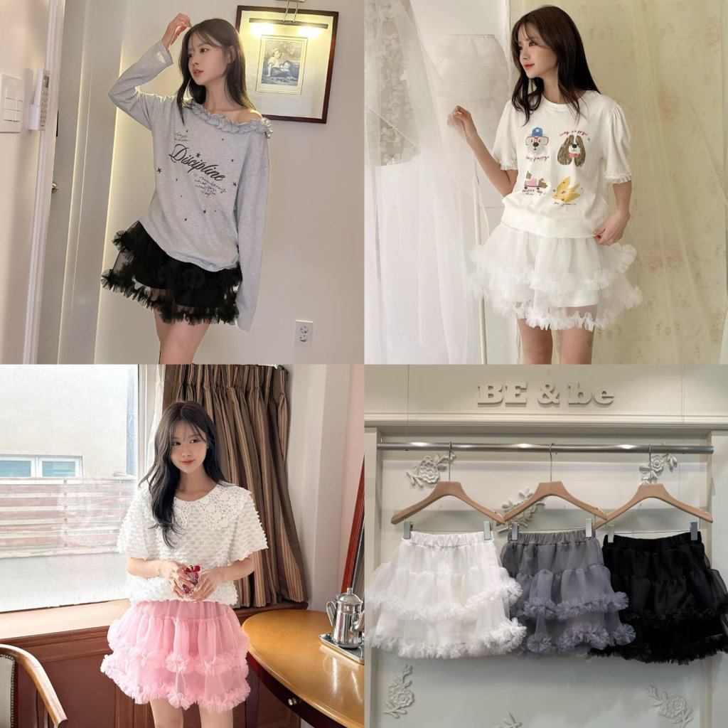 BB09 芭蕾感蓬蓬雙層紗紗飛邊短裙 26-46/54/16 $465