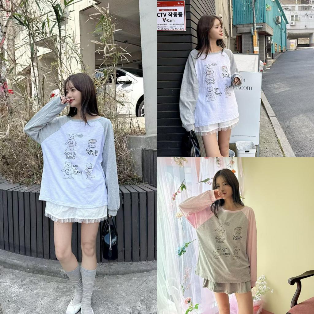Home BB41 手繪風熊熊圖案拼色手袖TEE