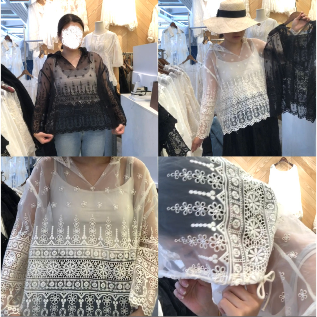 Vi29 鏤空刺繡歐式圖案連帽TOP