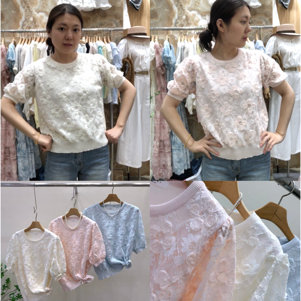 ES12 雙層刺繡花花公主袖TOP 44/22 $278