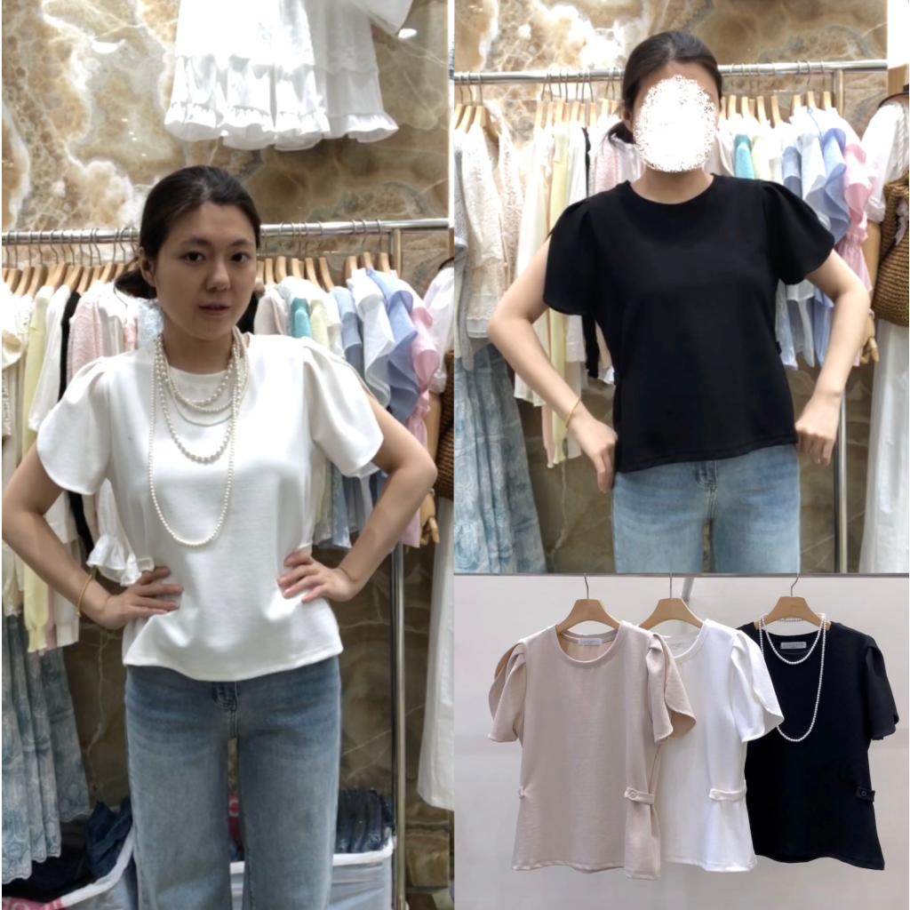 ES27 開叉公主袖鈕扣修腰TOP