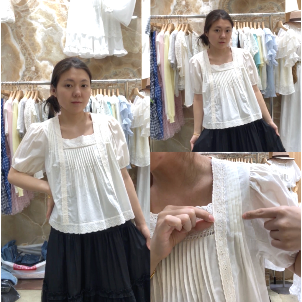 ES33 方領壓褶刺繡邊TOP 42/21 $308